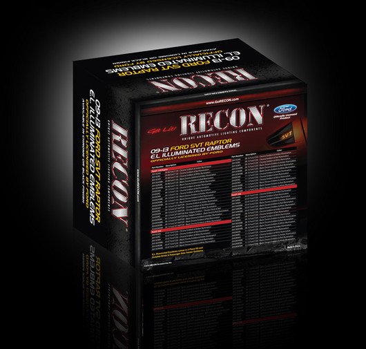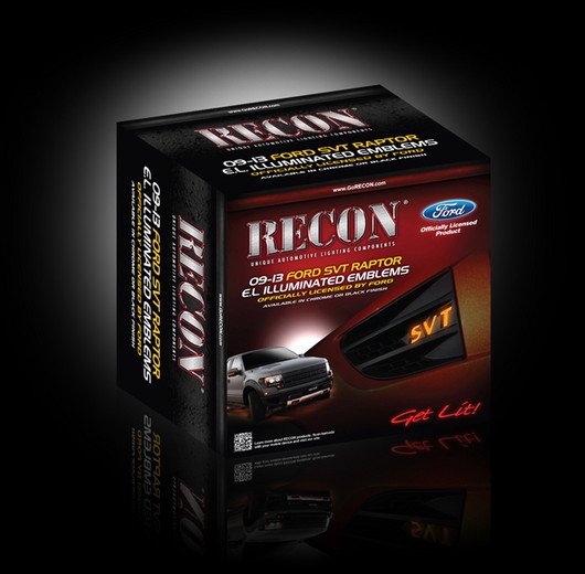 RECON Part # 264283RDBK - ILLUMINATED EMBLEMS - 09-14 Ford SVT RAPTOR Illuminated Emblems 2-Piece Kit Includes Driver & Passenger Side Fender Emblems in Black - SVT in RED ILLUMINATION