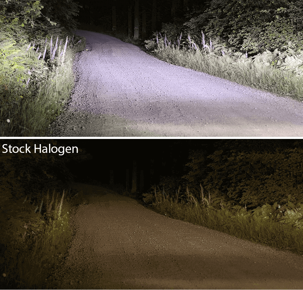• Super high-output proprietary ballast-free technology boasting up to 400% more usable light than factory installed halogen gas-filled bulbs